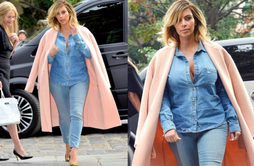 On regrette cependant que le relooking de Kim se soit arrêté au manteau. Entre bottines de montagne à talons aiguilles, robe outrageusement décolletée et chemise en jean prête à craquer sous la pression de son 95G, la jeune femme a encore quelques progrès à faire...