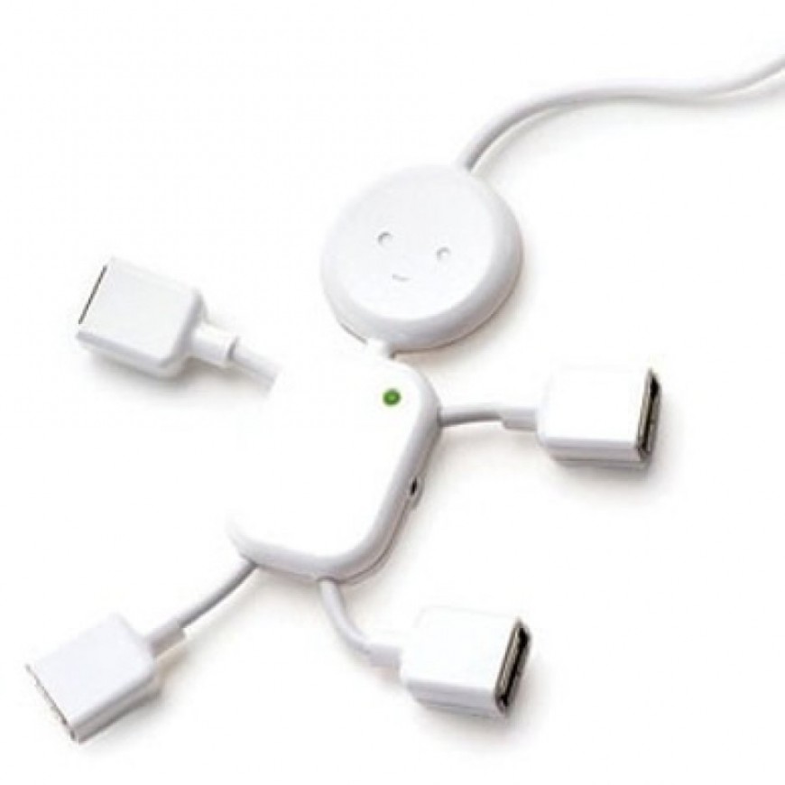 A la fois pratique et original, le Hub USB bonhomme Hubman comporte 4 ports USB 2.0 permettant de relier 4 périphériques à votre ordinateur. Plus qu’un outil informatique, le Hub USB bonhomme Hubman apporte une touche de fantaisie à votre bureau. Une fois branché, le cœur du Hub USB bonhomme Hubman s’illumine pour vous. Vous ne pourrez plus vous séparer de ce petit personnage au charme fou !