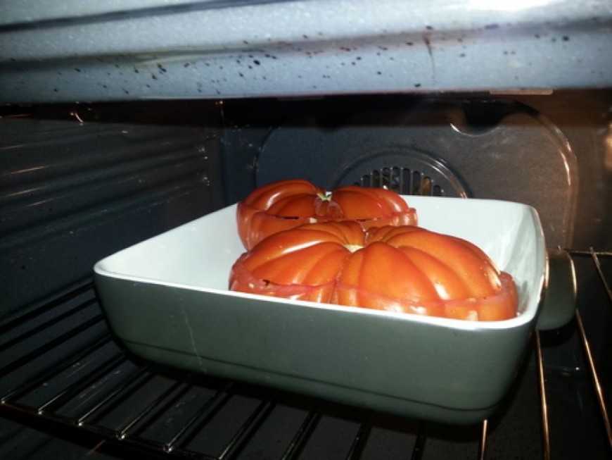 Une fois cuites, ajouter une pincée de fleur de sel à l'intérieur de la tomate et servir aussitôt.