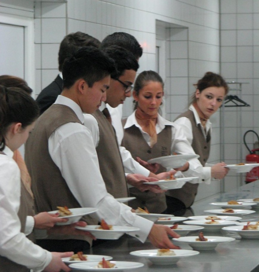 A l'Institut, de jeunes serveurs et cuisiniers s'affairent en salle et aux fourneaux. Depuis mardi, vingt étudiants assurent midi et soir une cinquantaine de couverts dans ce nouveau lieu de la gastronomie ouvert, place Bellecour, par l'Ecole de management de l'hôtellerie, de la restauration et des Arts culinaires. Après Ecully, où un restaurant pédagogique et une école pour amateurs ont été créés il y a plusieurs années, l'Institut Paul Bocuse a investi 1, 9 million d'euros pour proposer à Lyon un concept similaire.