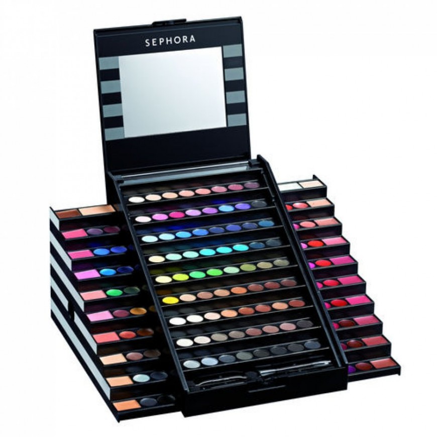 La première palette académie de maquillage Sephora composée de 130 couleurs pour un maquillage complet yeux – teint – lèvres.
