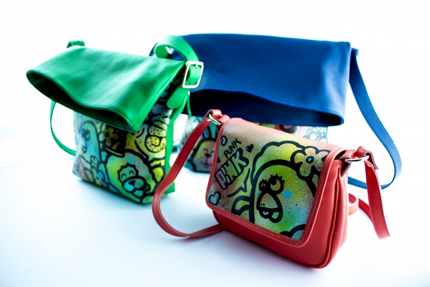 collection de sacs graffés, une série de pièces uniques en quantité limitée. Une collection capsule est également née de cette collaboration.