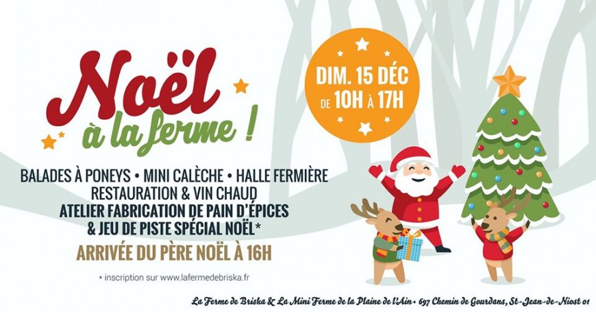 Dimanche 15 décembre, c'est la grande fête de Noël à la Ferme ! Balades à poneys, petite calèche, bons cadeaux, vin chaud, chocolat chaud et crêpes, arrivée du Père Noël... bref, il y en aura pour tout les goûts !