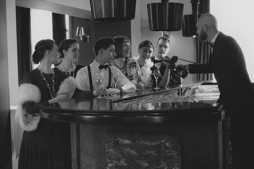 Installez-vous confortablement au bar, dégustez une coupe de Champagne, un cocktail d’époque ou venez danser au rythme endiablé Charleston by Funky Djo !