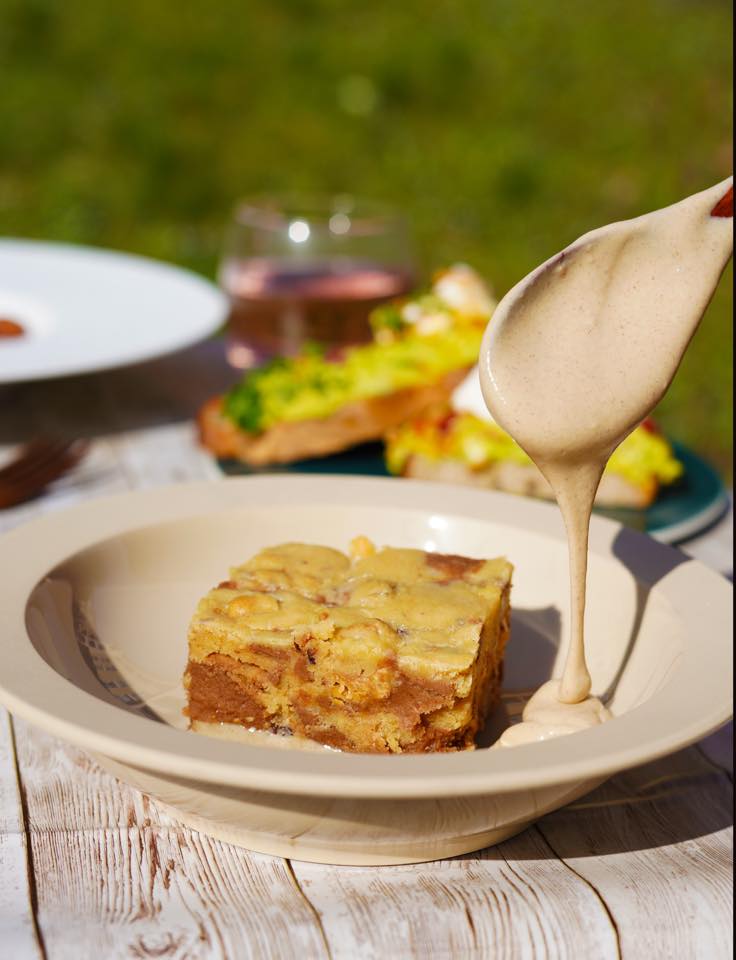 ⁃ Brookie, mix d’un cookie moelleux et d’un brownie fondant et sexy crème anglaise au Baileys praliné