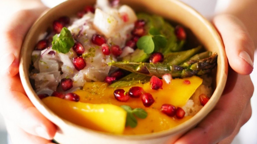 - Hawaï baby : Riz blanc, daurade façon leche de tigre (citron vert & lait de coco), avocat, mangue, grenade, asperges grillées