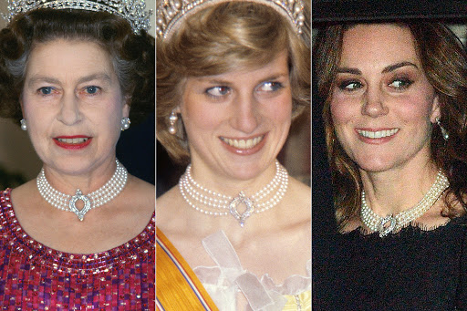 Son collier ras de cou fait écho à une occasion plus heureuse pour la reine et son défunt époux. Kate Middleton l'a porté lors d'un dîner festif pour le 70ème anniversaire de mariage d' Elizabeth II et Philip Mountbatten. Ce collier a également été prêté à Lady Di en 1982.