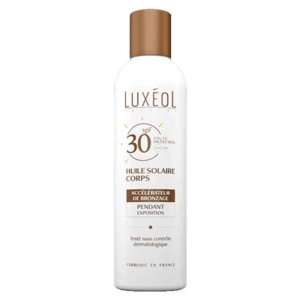 L’Huile Solaire Corps Luxéol : Cette huile a la protection SPF 30 rehausse votre bronzage.