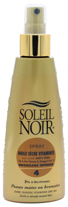 L’Huile Sèche Vitaminée de Soleil Noir : Proposée sous forme de spray, cette huile de bronzage intense contient des vitamines pour sublimer votre bronzage.