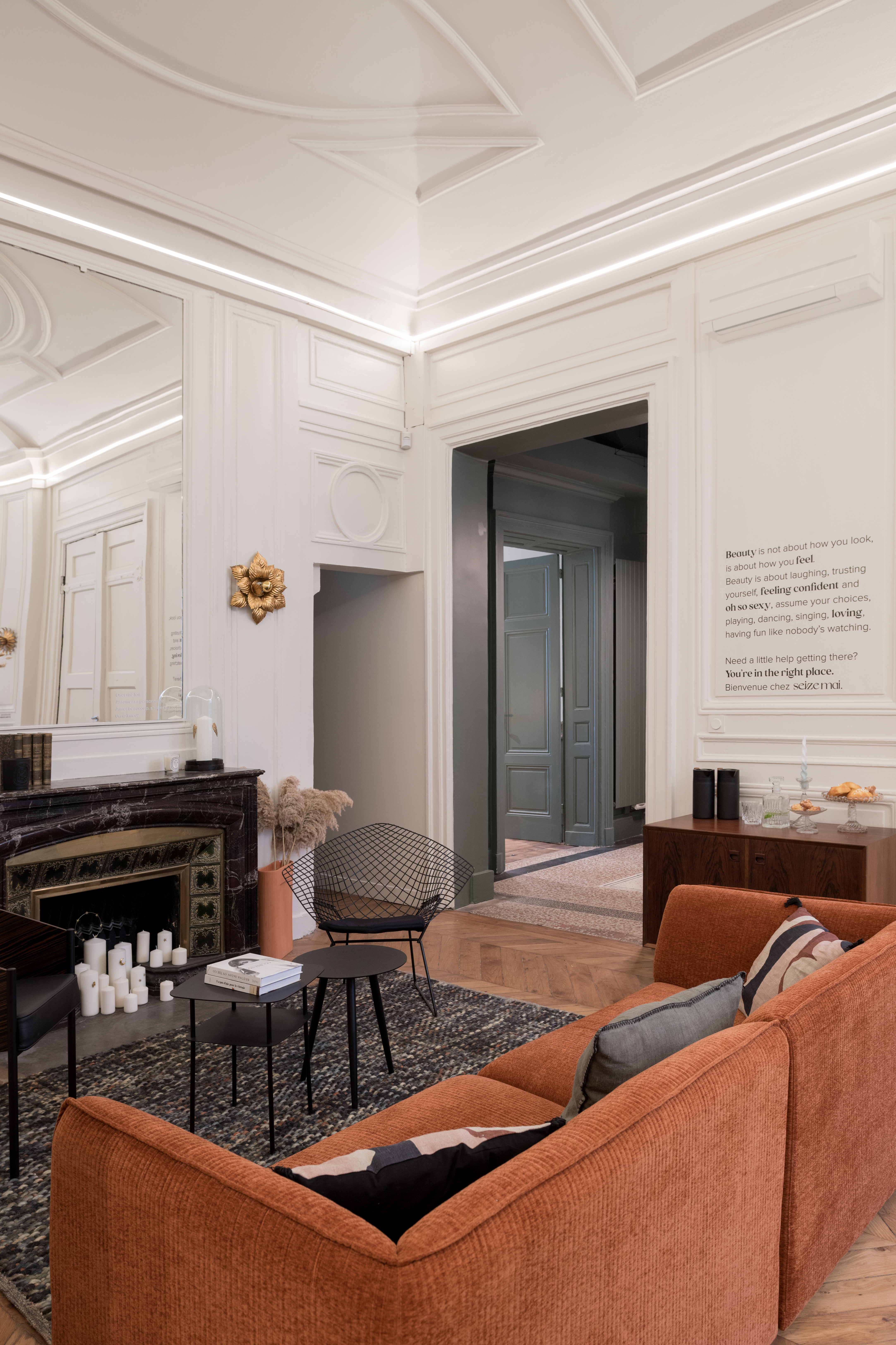 Loin des clichés des cabinets de chirurgie esthétique entièrement immaculés de blanc du sol au plafond, ici vous êtes accueillis dans un appartement décoré et pensé comme un lieu de vie où la bienveillance règne en maîtresse de maison ! Chaque mur, chaque plafond chaque recoin, respire la douceur ! Au coeur de ce projet, Agathe Molinar, entrepreneure dans l’âme et visionnaire, a mis les petits plats dans les grands pour combiner espace de vie, développement personnel et équipe hautement qualifiée !