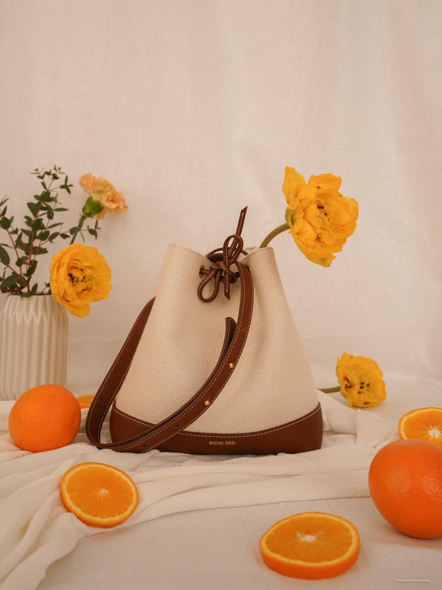 Créée par Eva, Maison Édèle est une jeune marque de maroquinerie lyonnaise. Elle propose des pièces qualitatives alliant matières éco responsable et fabrication 100% française. Nous avons choisi le sac seau "Cléome" en toile de coton recyclé mixé à des détails en cuir éco responsable. Un must have pour cet automne qui saura se marier divinement bien avec votre meilleur trench coat. Site - Instagram