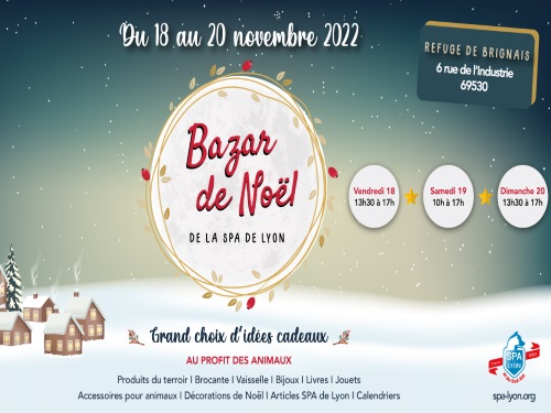 Le refuge de Brignais accueillera du 18 au 20 novembre un marché de Noël au profit des animaux sans famille. Trois jours où il sera possible de trouver des produits du terroir (miels, vins, biscuits, confitures, chocolats…), des cartes de vœux, des décorations de Noël sans oublier de quoi gâter votre animal pour les fêtes de fin d’année. Les bénéfices des ventes seront dédiés à l’accueil et à la prise en charge des animaux en détresse. Aucun animal à l’adoption ne sera présent au Bazar de Noël ; la SPA de Lyon ayant à cœur de sensibiliser le public sur le phénomène de "l’animal-cadeau" offert à Noël à l’origine de nombreux abandons. Toutes les informations sont à retrouver ici