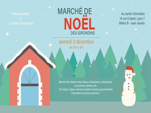 Le rendez-vous est donné dans le 7e arrondissement (14 rue Crépet. Le marché de Noël des Girondins se déroulera le samedi 3 décembre au Jardin Girondins de 10h à 18h. Un marché de créateurs en extérieur avec bijoux, illustrations, céramiques, gastronomie. Du vin chaud, des crêpes, des marrons chauds et d’autres gourmandises sont au programme ainsi que d’autres surprises. Toutes les informations ici