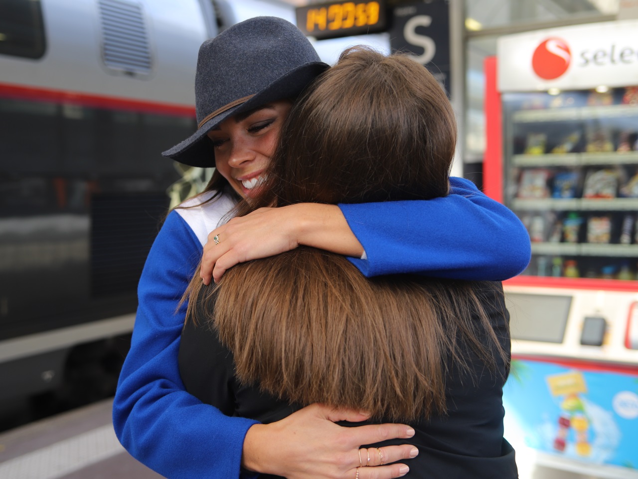 L’heure est déjà aux derniers conseils de la créatrice Ludivine Guillot avec qui elle a préparé son trousseau pour l’aventure, des encouragements de l’ancien patineur Gwendal Peizerat sur le quai sans oublier des dernières embrassades avec ses amis venus l’accompagner jusqu’à sa montée dans le train. "Je vais tout donner pendant un mois et j’espère que les Rhônalpins seront derrière moi. Je vais partager au maximum mon aventure", explique Esther.