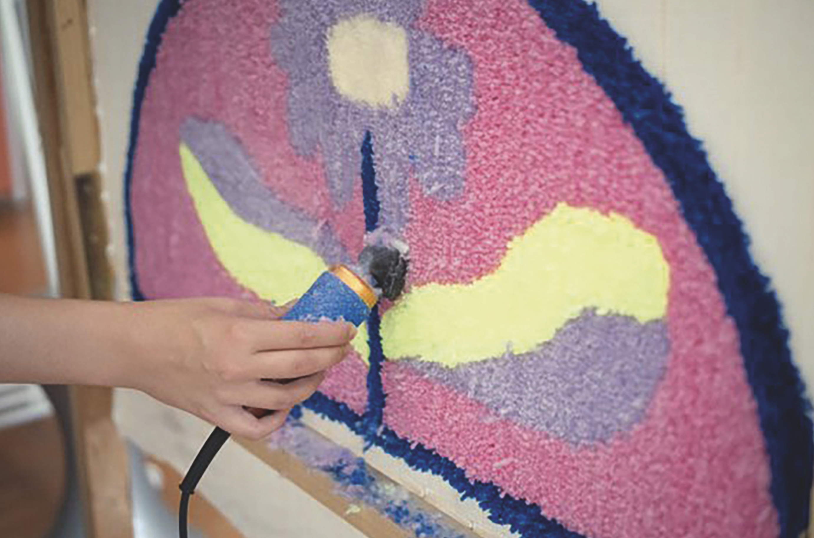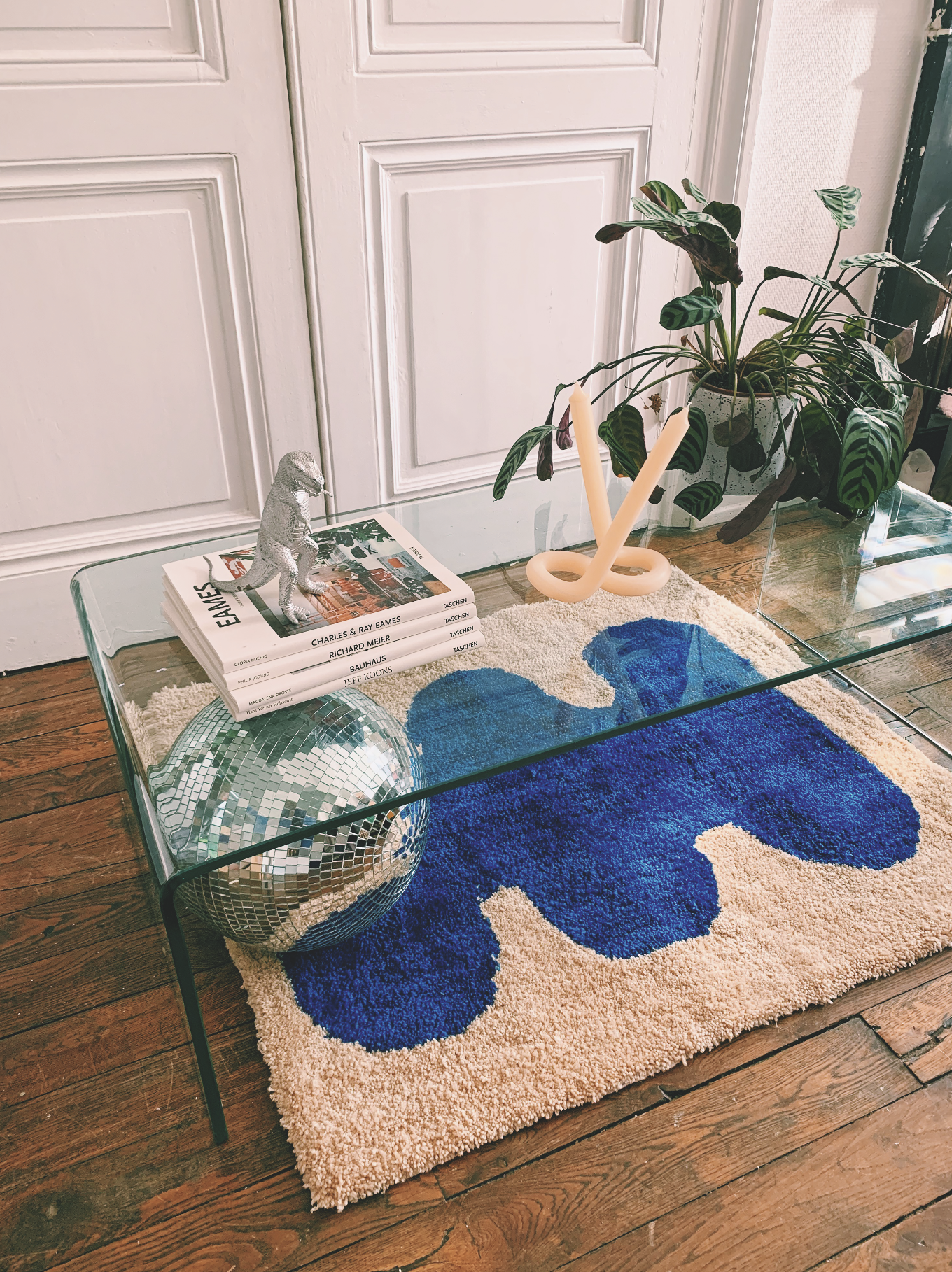 Après des études dans le web et la communication, Philippine débute en 2020 dans l’entrepreneuriat créatif, d’abord en vendant ses propres illustrations et, ensuite, en créant des tapis originaux, faits à la main : « J’avais cette idée de tapis depuis un moment alors je me suis dit, on y va et on verra bien ! ». Fascinée par la technique du tufting, la jeune femme désire un métier plus manuel que l’illustration numérique. Elle achète donc tout le matériel nécessaire pour commencer à créer ses propres pièces tuftées : « Le tufting, c’est comme peindre avec de la laine ».