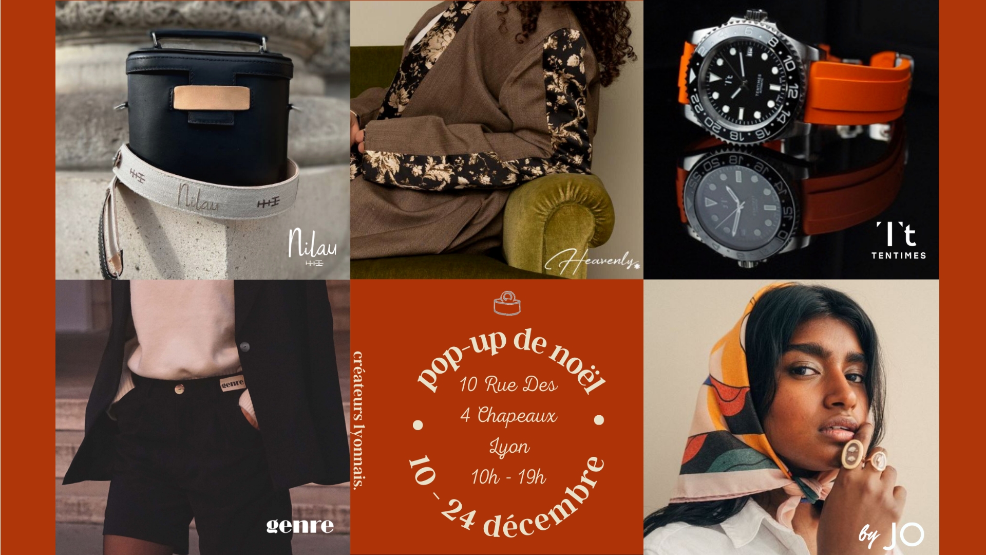 Cinq créateurs réunis pour un pop-up store 100% lyonnais : Genre (vêtements non-genrés et éthiques), Nilau (maroquinerie), Tentimes (montres), By JO (vêtements et accessoires) et Heavenly Style (vêtements éthiques).