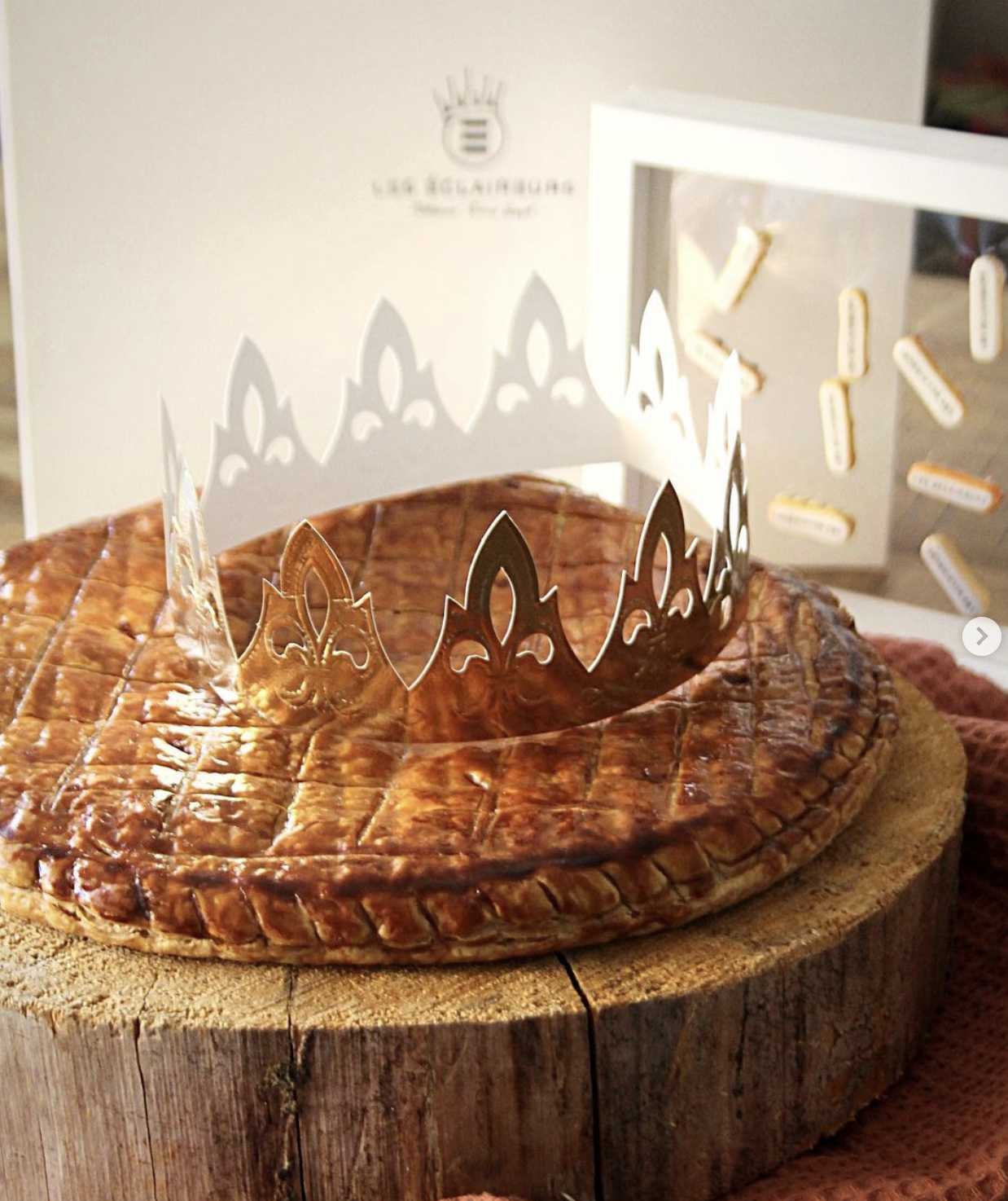 Croustillante, fondante avec une pointe d’amaretto qui fait toute la différence. Cette galette généreuse pour 8 personnes dans laquelle vous trouverez 2 fèves à l’effigie de la spécialité des chefs : les éclairs emblématiques qui font le succès de la boutique.