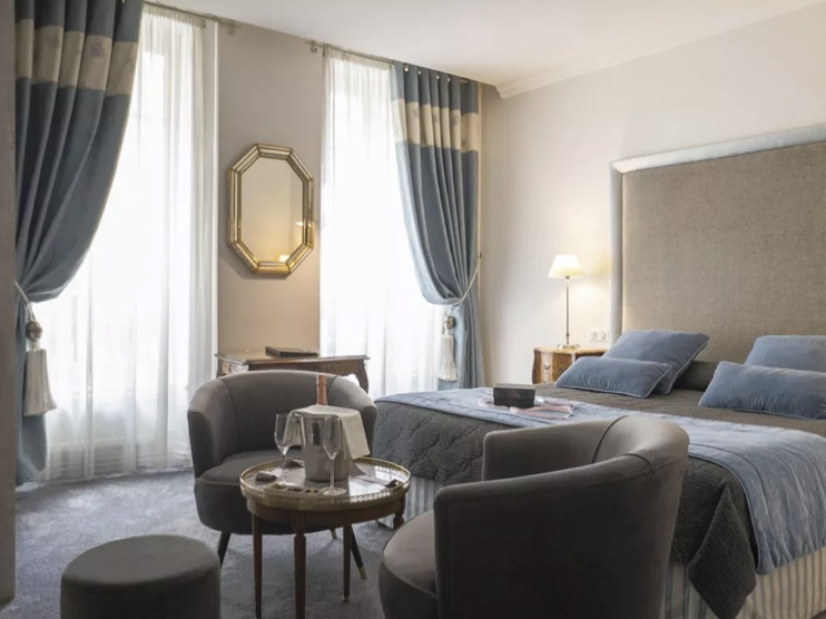 Établissement emblématique de la Presqu’ile, le Grand Hotel des Terreaux incarne le raffinement audacieux du mouvement Art déco de belle époque Lyonnaise depuis 1855. Ce bâtiment, chargé d’histoire, vous accueille dans un carde élégant et haut de gamme en pleins coeur du premier arrondissement. Ce 4 étoiles vous offre des chambre à l’atmosphère intimiste et chaleureuse, avec la promesse d’un séjour de qualité et soigné !