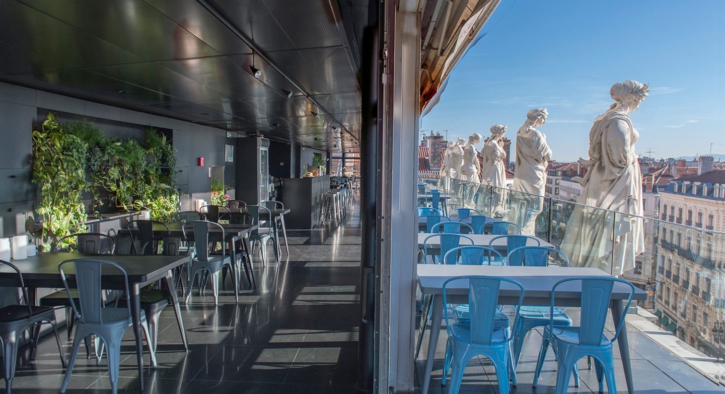 Un cadre hors du commun et une vue imprenable sur la ville, voici les Muses. Situé au 7e étage de l’Opéra, ce lieu à de quoi surprendre : une décoration épurée, de bons cocktails, un cadre relaxant et une vue à couper le souffle.
