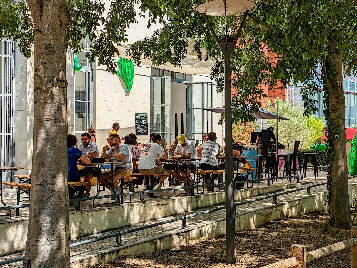 Située à la pointe de la presqu’île, cette friche industrielle accueil Heat un halle à manger avec 4 conteneurs dédiés à la street-food qui changent toutes les semaines. Un bar central est également installé, avec bière et cocktails. Ouvert sur Confluence, le lieu accueille de multiples événements du mercredi au dimanche avec des dj set, des friperies, des ateliers, et bien d’autres, le tout en plein air entouré de plantes et de couleurs surplombé d’une immense boule disco.