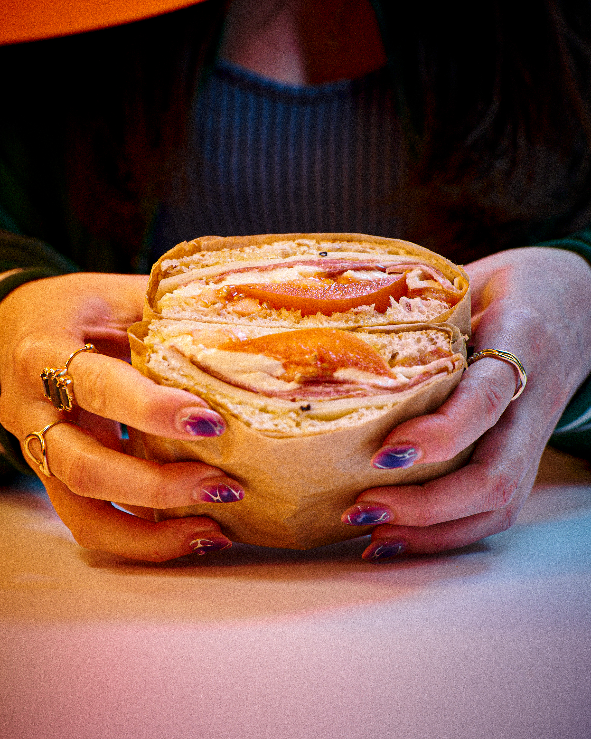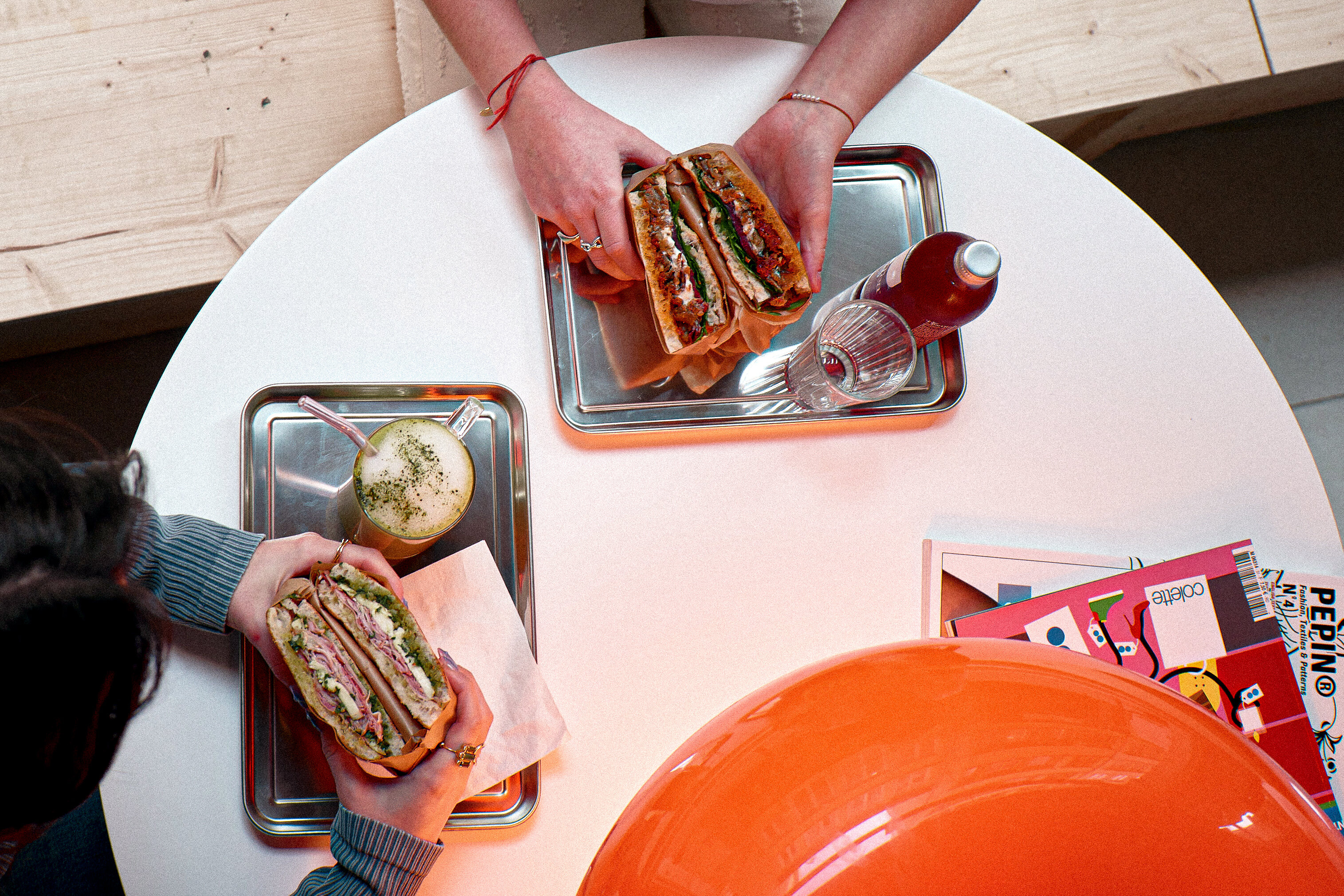 L'aventure a débuté il y a quelques semaines au 19 rue Sergent Blandan tout près de la place Sathonay. Ce petit restaurant à la déco ultra pop, propose des sandwichs à la minute préparés sous nos yeux sur fond de recettes italiennes. Deux végétariennes et cinq classiques avec des noms plus qu’accrocheurs : la daronne, la moula, le sancho… un bon clin d’oeil à l’argot lyonnais. Avec un pain frais livré tous les matins de la boulangerie O Tão Bom vers Croix-Paquet, vous pouvez vous-même choisir votre miche lors de la composition de votre sandwich : focaccia ou ciabatta. Les recettes varient au fil des saisons avec des produits frais de producteurs français et certains tout droit importés d’Italie : gorgonzola, mozzarella fior di latte, pecorino, staciatella, bresaola, tomates séchées…