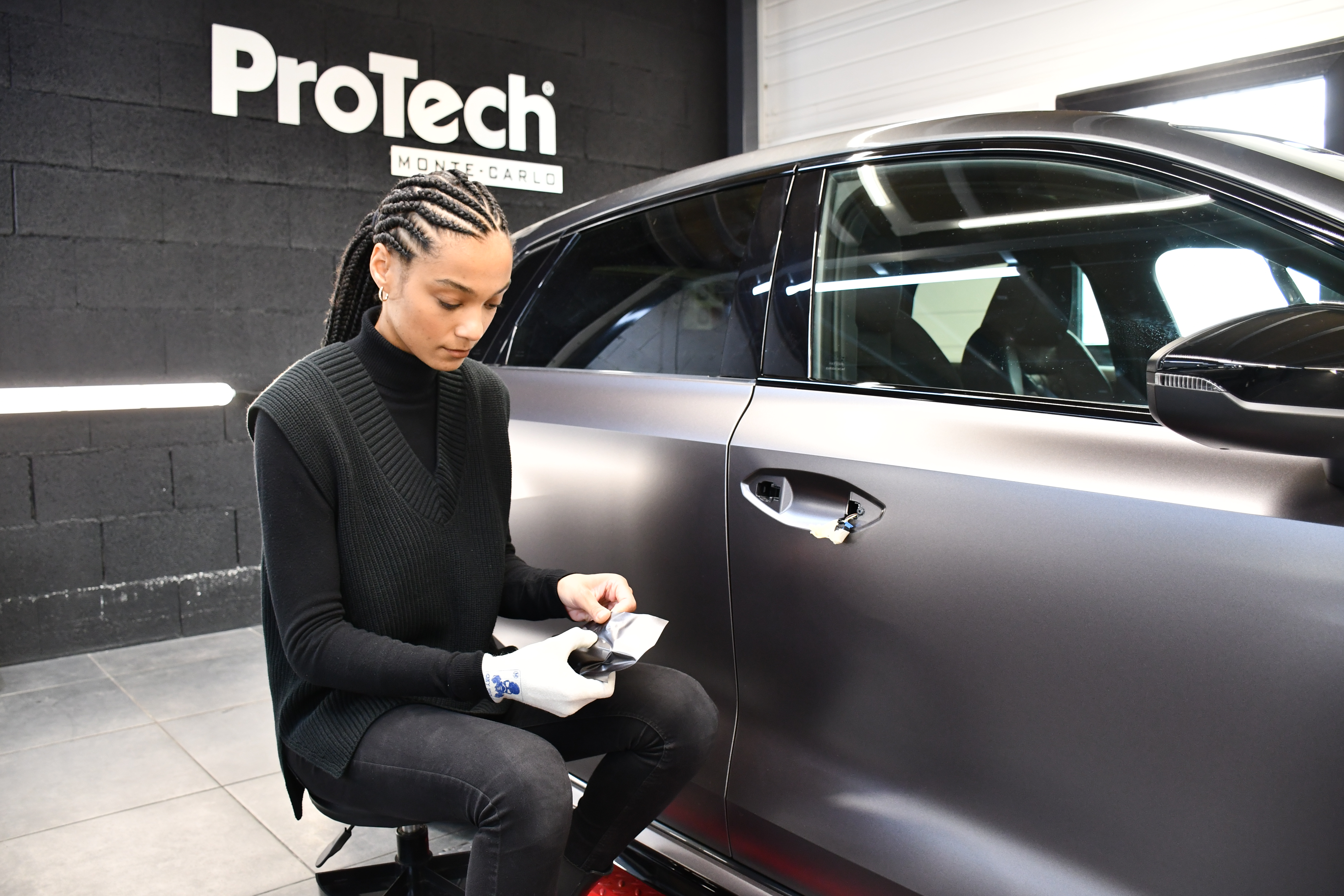 Ça permet de personnaliser sa voiture. On va appliquer un film adhésif sur la carrosserie d’origine, sans toucher à la peinture. Le covering, c’est vraiment se faire plaisir. Par exemple, j’ai du rouge à lèvre aujourd’hui, demain je n’ai pas envie de l’avoir donc je vais l’enlever… Souvent, les clients ont une couleur, ils ont dû commander en noir par défaut à cause des délais improbables de livraison. Et ils vont opter se faire plaisir avec un covering. Si dans deux ans ils en ont marre, ils l’enlèvent et dessous c’est comme neuf. La mode qui a toujours été là c’est le noir ou le gris satiné.