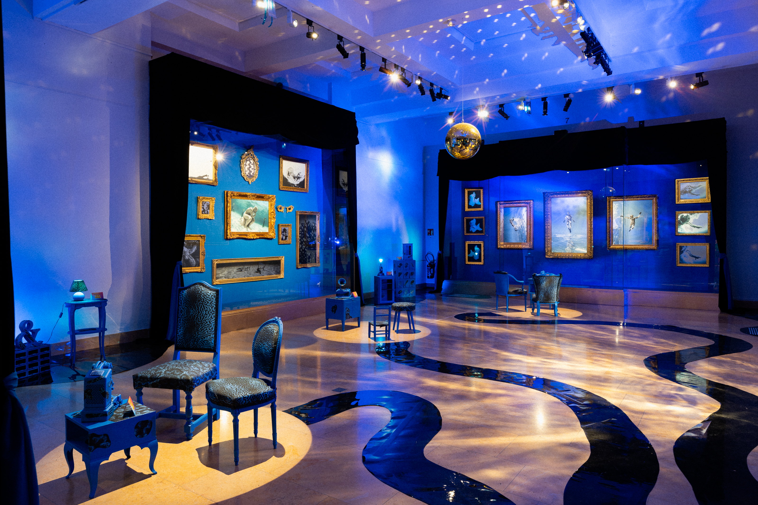 Chaque artiste s’est installé dans une salle pour créer sa scénographie. Les œuvres s’étalent parfois sur 70 m² et plus. La taille des salles, les couleurs, les différents objets et les musiques d’ambiance donnent une impression d’entrer dans une autre réalité.