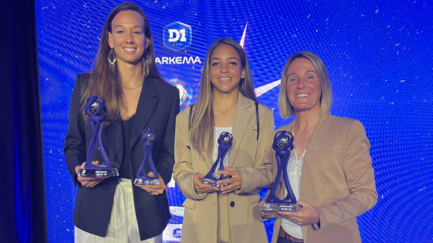Sonia Bompastor, la coach de l’OL féminin, a reçu le trophée de meilleure entraîneure de l’année face à Gérard Prêcheur du PSG et Fabrice Abriel de Fleury.