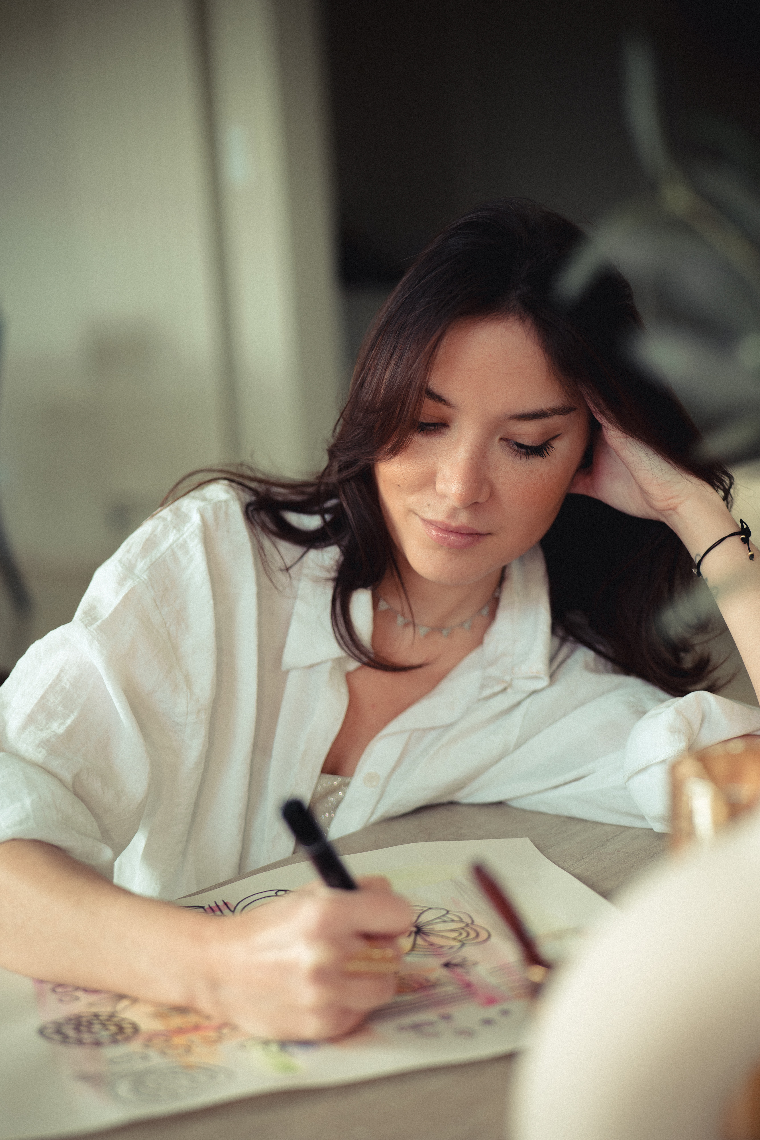 Car c'est là que tout a commencé il y a neuf mois. "Après le décès de ma maman, j'ai connu beaucoup d'épisodes d'anxiété. J'ai essayé plein de thérapies différentes qui m'ont aidée. Mais quand j'étais en crise, j'avais du mal à appliquer ces techniques. Donc je cherchais toujours de nouvelles choses. J'ai découvert le Zen Tangle puis l'art thérapie et en particulier cette technique venue des Etats-Unis où tu reproduis des motifs pour te calmer. J'ai découvert un dessin, j'ai voulu le reproduire et je me suis filmée. Avec plein de traits aléatoires… Pendant cette demi-heure, je n'ai pensé à rien du tout ! C'était la première fois que je déconnectais vraiment. J'ai posté la vidéo sur Tik Tok, et là, j'ai atteint les 4 millions de vues".