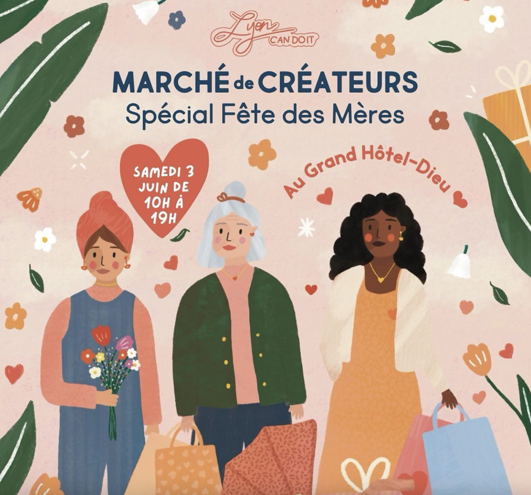 Le samedi 4 juin, retrouvez un marché de créateur dédié à la fête des mères par Lyon can Do It au Grand Hotel Dieu. L’occasion de découvrir une sélection d’idées cadeaux de créateurs de la région Auvergne-Rhône-Alpes avec de la décoration, des bijoux, des illustrations, des accessoires … Plus d’infos ici.