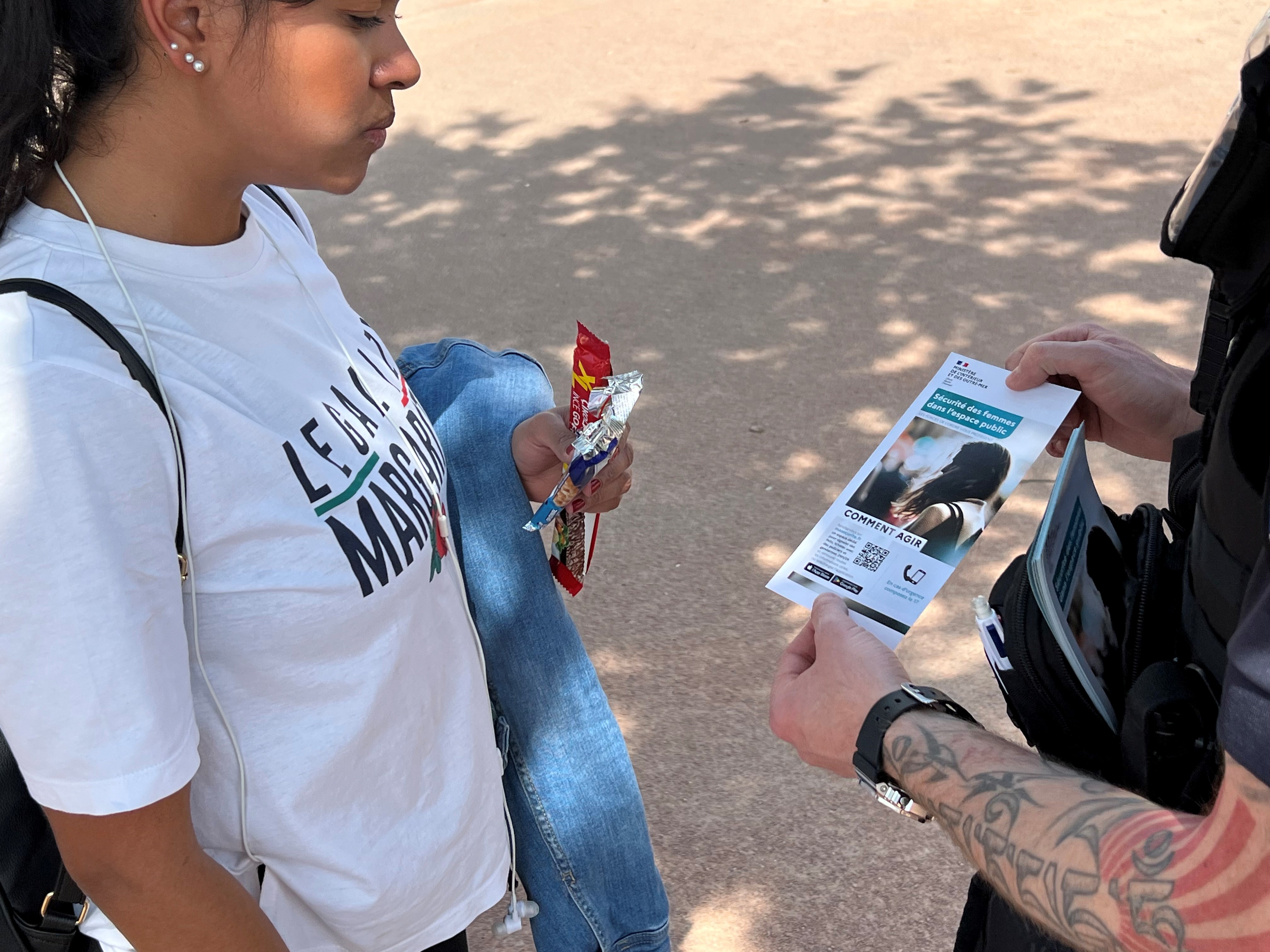 A Lyon, les forces de l'ordre avaient choisi la place Bellecour pour cette première distribution sous les yeux interrogateurs des passants concernant les flyers en question. "On doit se réapproprier collectivement la voie publique et ne pas accepter qu’une jeune femme soit embêtée. Il faut qu’elles puissent traverser Bellecour sereinement", a affirmé Ivan Bouchier, Préfet délégué pour la défense et la sécurité, présent sur place lors de cette opération.