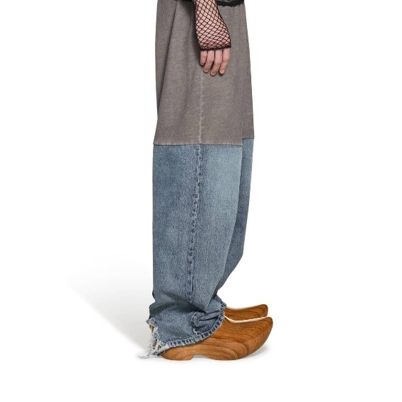 A l’allure lourde et pointue, le sabot de la grande maison ne passe pas inaperçu. Impossible de ne pas l’avoir déjà vu passer sur les réseaux sociaux, cette chaussure qui fait polémique est en gomme imprimée bois. Aux dimensions démesurées, le sabot Balenciaga contient une semelle de 90 mm, ce qui risquerait de faire perdre l’équilibre à un bon nombre de personne …