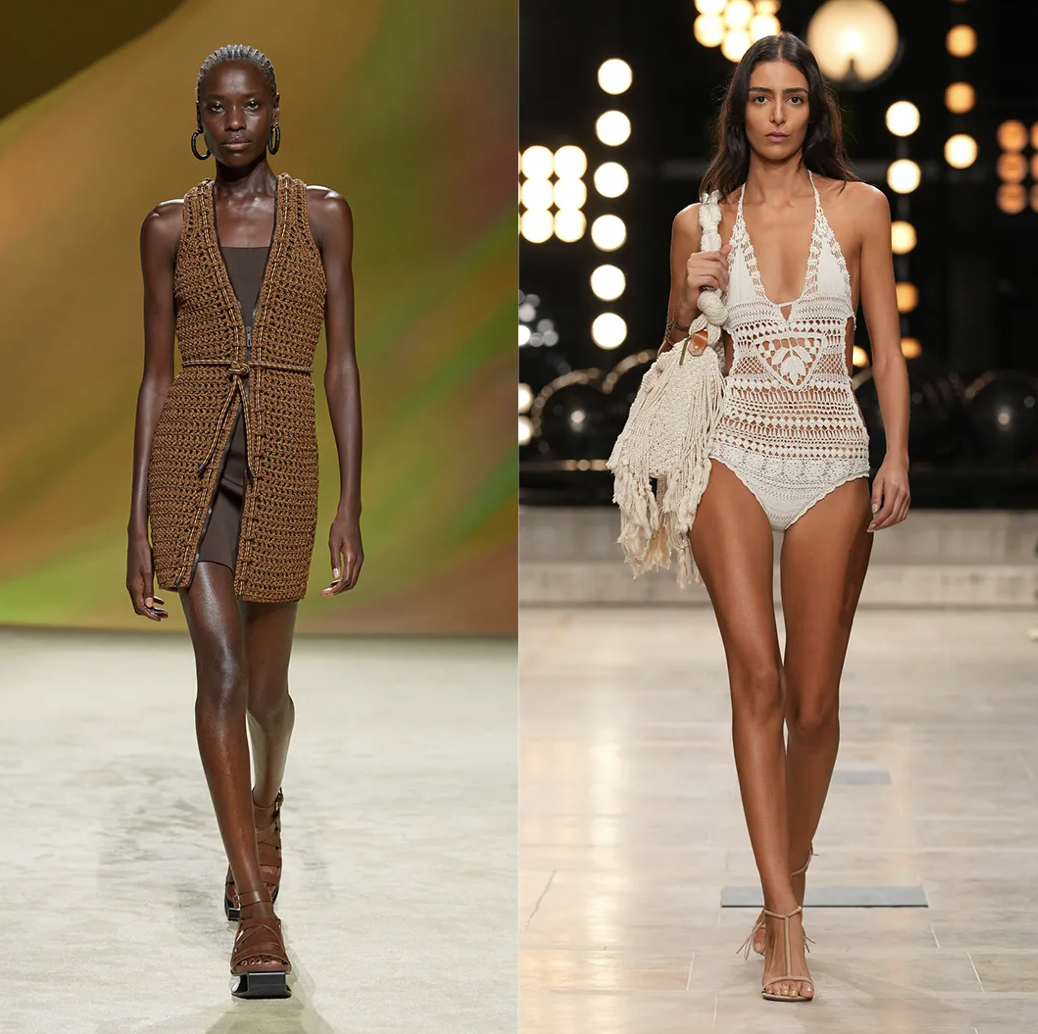 Entre artisanat et retour au 70’s, le crochet demeure l’une des valeurs sûres de cette saison. Il s’adopte à la plage à travers des robes ou des hauts courts, ou bien dans un modèle un peu plus citadin avec des vestes de tailleur, des hauts plus structurés.. Hermès, Isabelle Marant et marine Serre l’ont notamment mis à l’honneur sur plusieurs de leurs derniers défilés.
