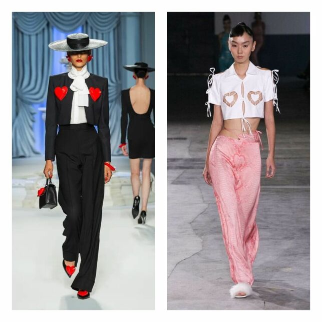 Mis en avant avec la série Emily in Paris, le coeur se fait une place de choix dans les collections estivales. Souvent vu comme kitch, ce motif revient pourtant dans nos garde-robes, confirmant un attrait pour l’esthétique girly chic, propulsé par Vivetta, Acné, Moschino et d’autres.