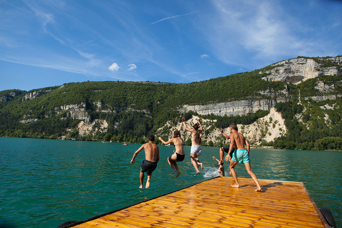 Situé dans l’Ain, le lac Nantua offre aux sportifs des activités aquatiques à l'exemple de la planche à voile, le ski nautique, ou encore le canoë. Entièrement gratuite, la baignade est surveillée tout au long de l’été seulement près du stade nautique. Ce spot incontournable enlacé de falaises de calcaire aux eaux bleues et vertes, est accessible en train depuis Lyon (1h15), à destination de Bourg-en-Bresse puis en TER ou bus jusqu’à Brion-Montrréal-La Cluse.