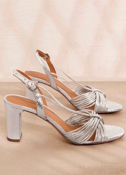 Sandales à talons or blanc Rivecour, 245 euros chez Bonny (19 Rue Auguste Comte, 69002 Lyon)