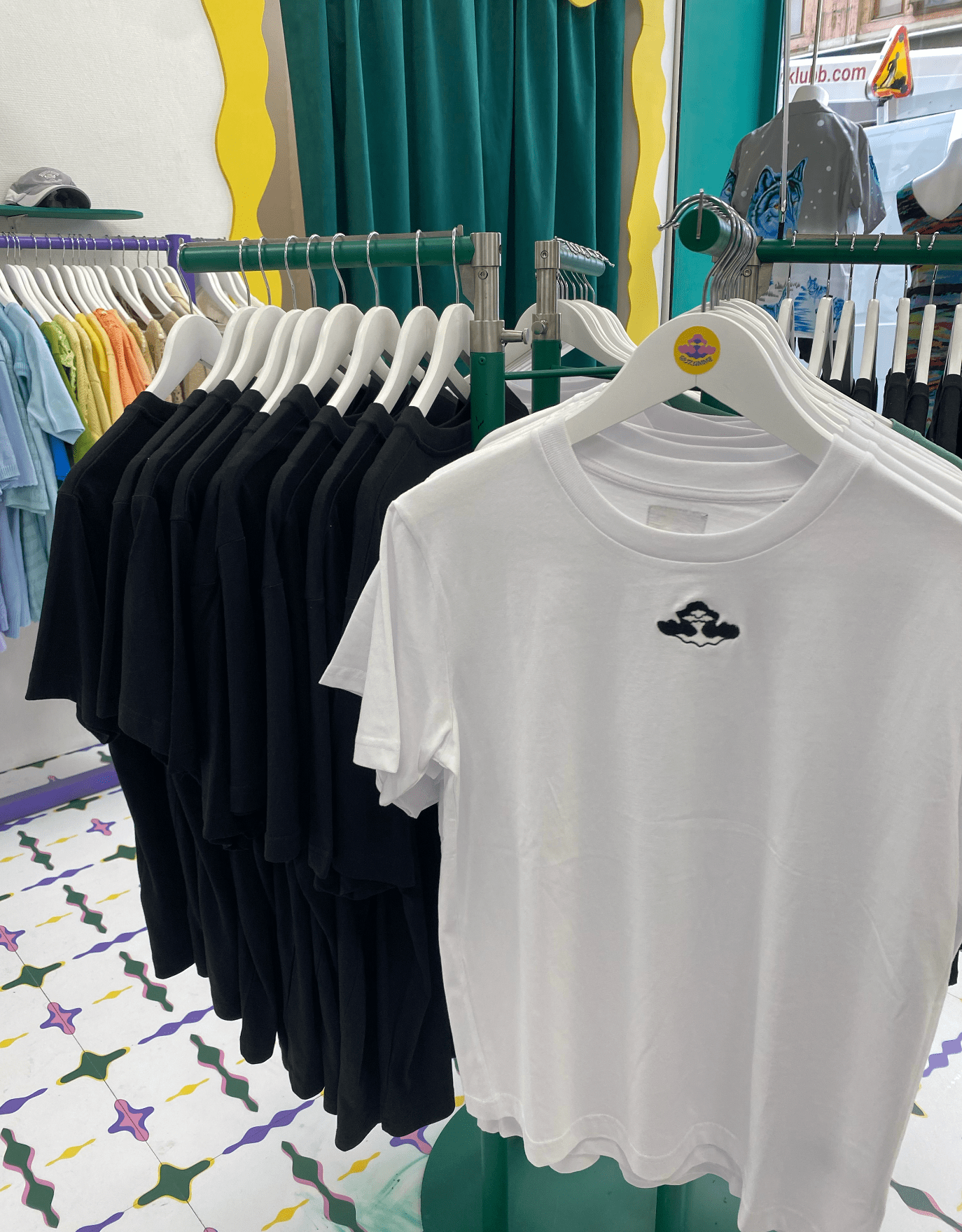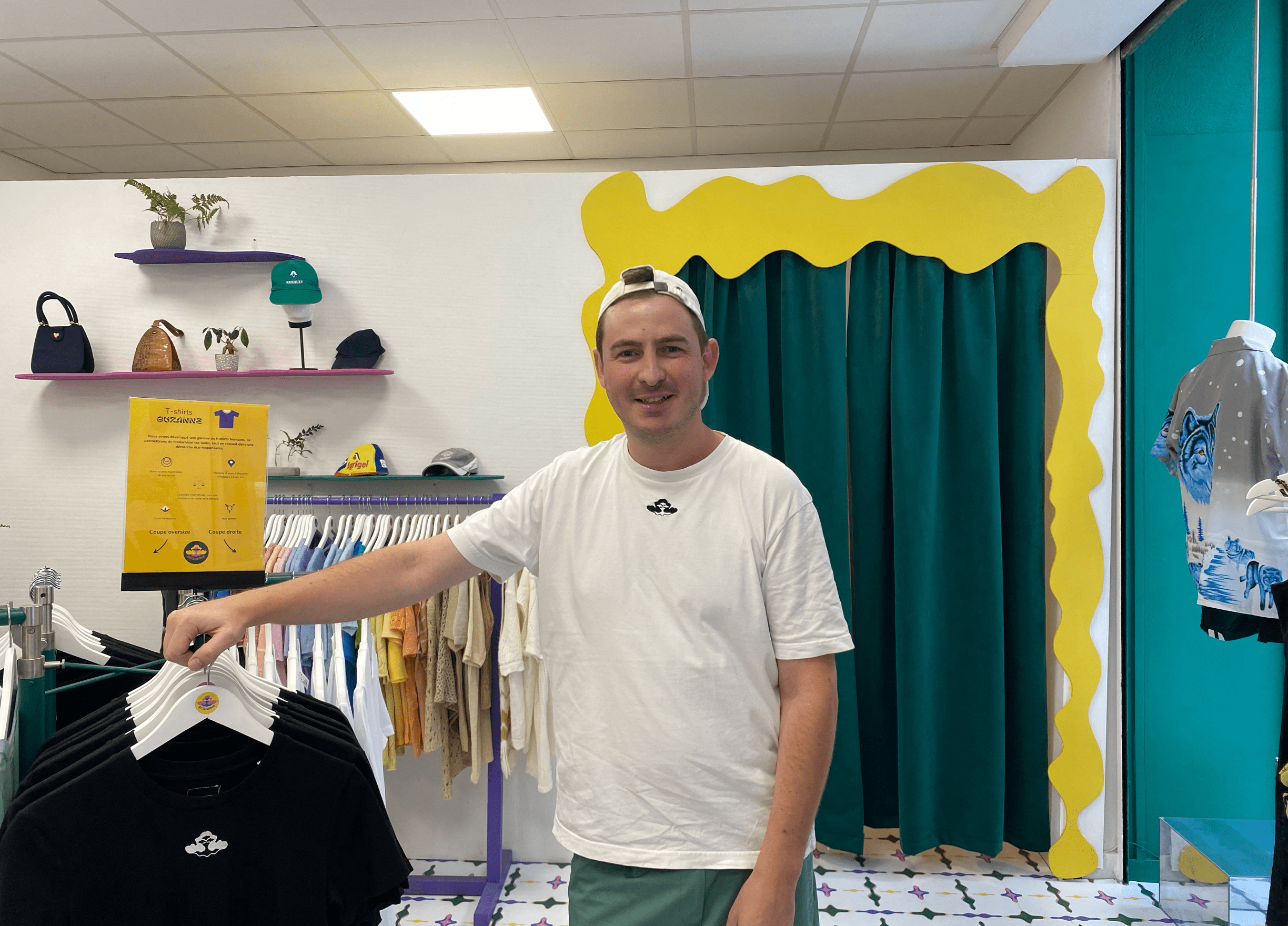 Un portant de la boutique est consacré à une série de t-shirt basiques spécialement conçus pour le lieu. « Il est toujours difficile en friperie, de trouver un bon t-shirt basique alors on a décidé d’y remédier à notre manière en proposant les nôtres ». En coton bio et brodés dans les pentes de la Croix-Rousse, chez Bambino Textile, ils sont disponibles en noir, blanc et vert au prix de 25 €.