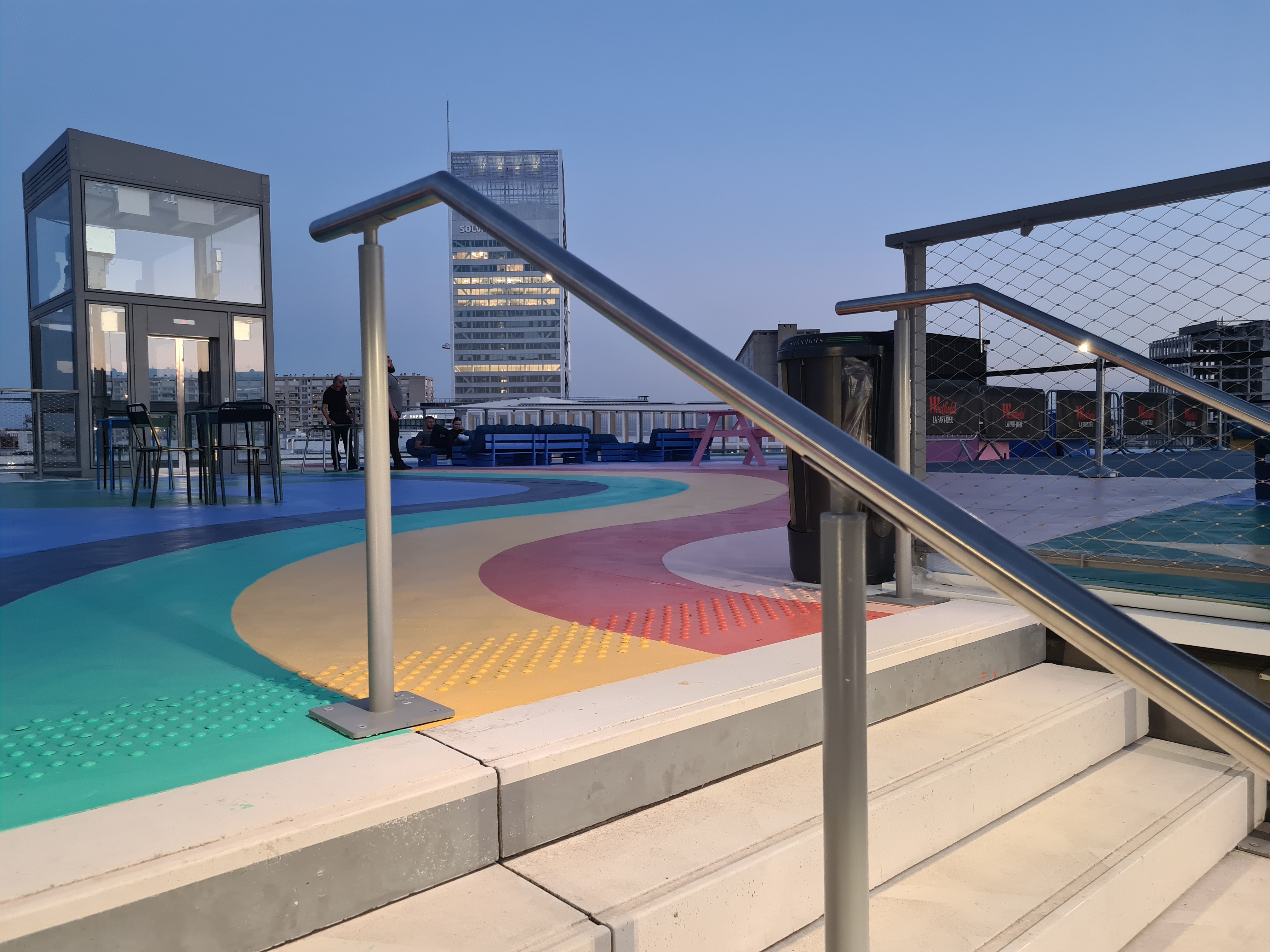 Et ce n’est pas tout… Pour cette nouvelle rentrée, Jean-Philippe Pelou Daniel, directeur du centre commercial, souhaite "apporter de la culture dans le centre" en créant "une nouvelle porte par le ciel". Une immense fresque abstraite de 758 m2 peinte à même le sol du rooftop par l’artiste lyonnais Thomas Lateur est notamment à découvrir.