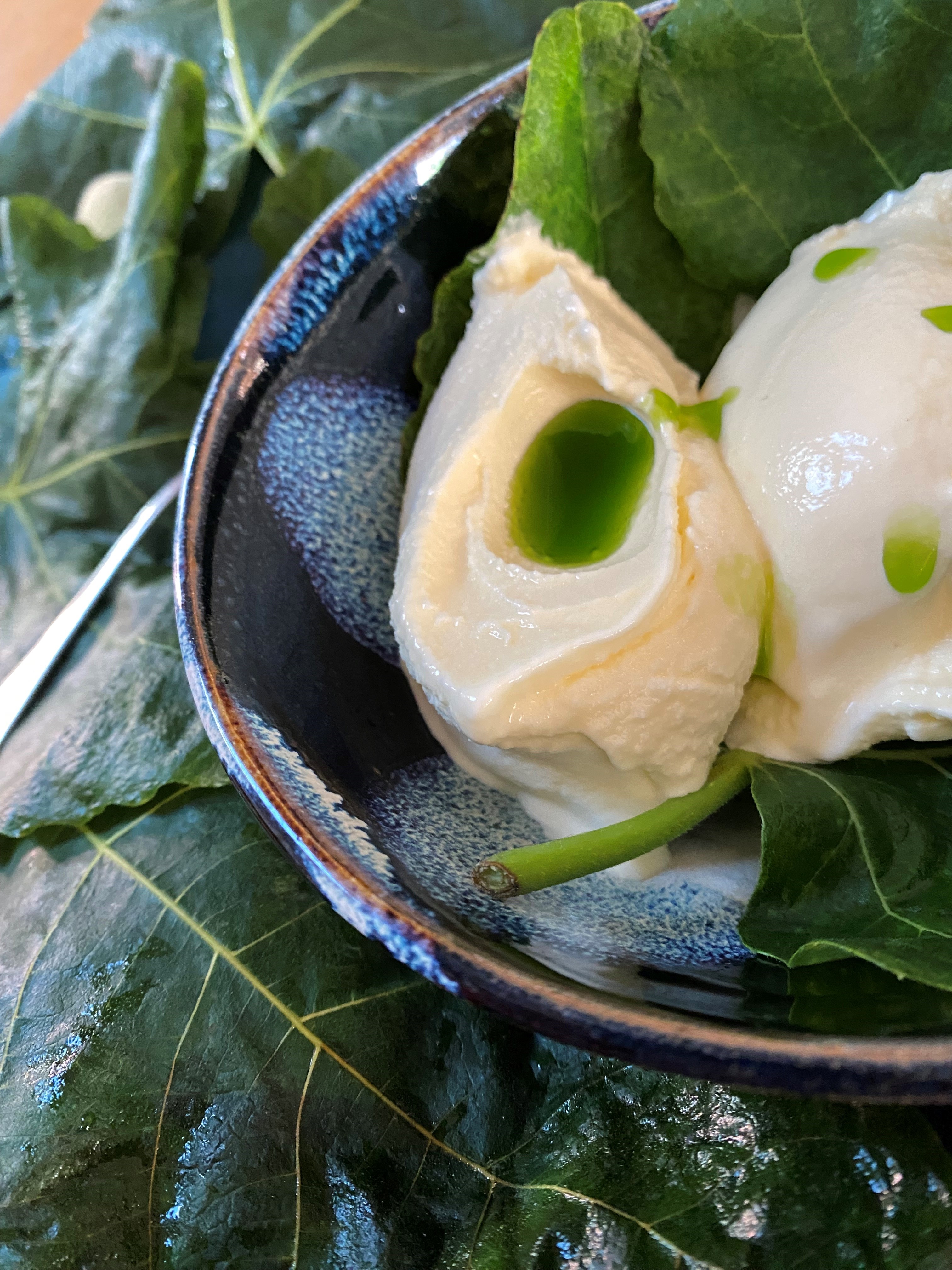 En cette saison estivale, Davia Chambon Granjon nous livre le secret de sa crème glacée infusée à la feuille de figuier. Une madeleine de Proust qui renvoie la cheffe lyonnaise directement en enfance… et nous aussi, par la même occasion.