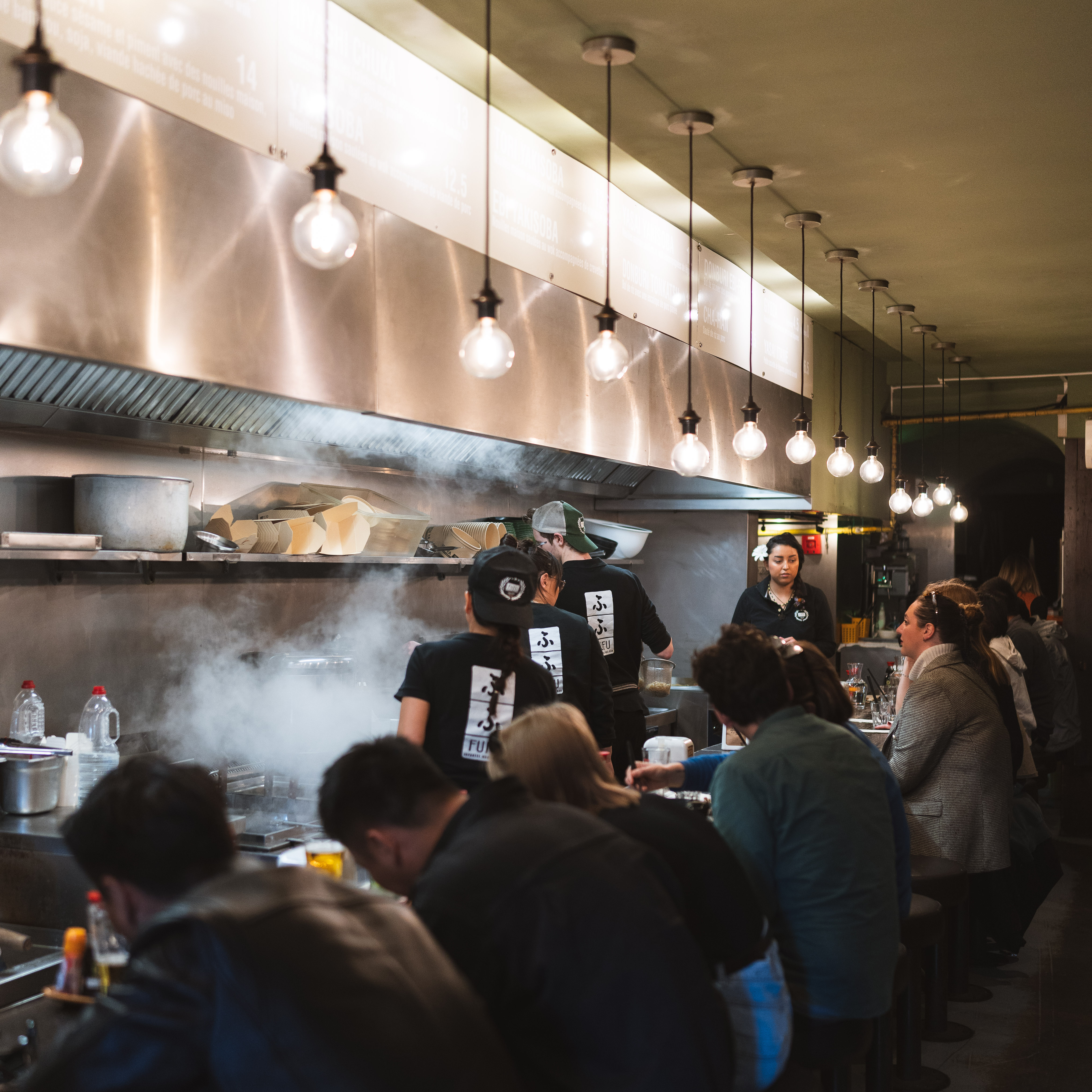 Des bruits de casseroles, de la vapeur, une bonne odeur de porc marinée… Il n’y a pas de doute, nous sommes à la bonne adresse. C’est à deux pas de la place de l’Opéra dans le 1er arrondissement que Clément Valo et Dorian Barruel, deux jeunes entrepreneurs lyonnais, ont décidé d’ouvrir Fufu Ramen.
