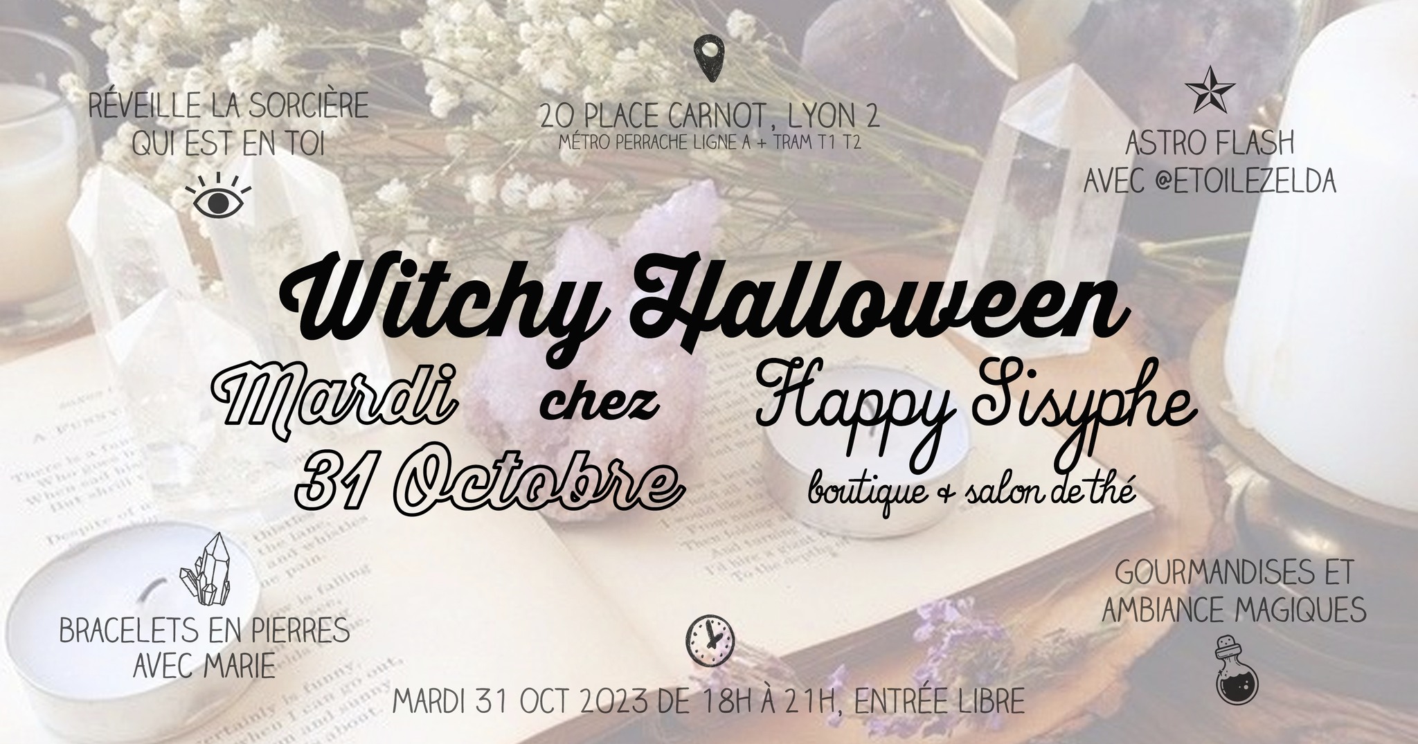 La charmante boutique ésotérique du 2e arrondissement Happy Sisyphe, vous invite à une soirée witchy, féministe et magique. Sur place, vous aurez la possibilité de connaître votre thème astral, fabriquer des bracelets en pierres selon vos besoins, ou encore goûter de délicieuses pâtisseries ensorcelées… Vous pouvez bien sûr venir avec votre plus beau costume de sorcière. Plus d'infos.