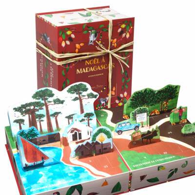 Comme chaque année, le chocolatier lyonnais Pralus propose un sublime calendrier de l’avant. En 2023, Pralus vous transporte direction Madagascar ! Sous forme de grand livre tropical, savourez à deux, près de 665 grammes de délicieuses gourmandises de Noël préparé directement par les pâtissiers de la maison.