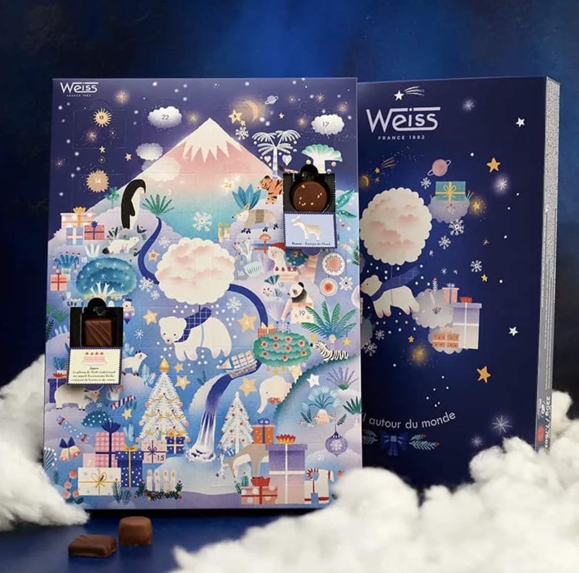 Weiss s’associe à l’illustratrice lyonnaise Laura Lhuiller pour vous proposer un calendrier de l’avent rempli de magie et surtout de chocolats ! Un voyage féerique et poétique, pour vous partager le voyage d’Eugène, l’ourson polaire. Un cadeau incontournable pour les enfants et les parents.