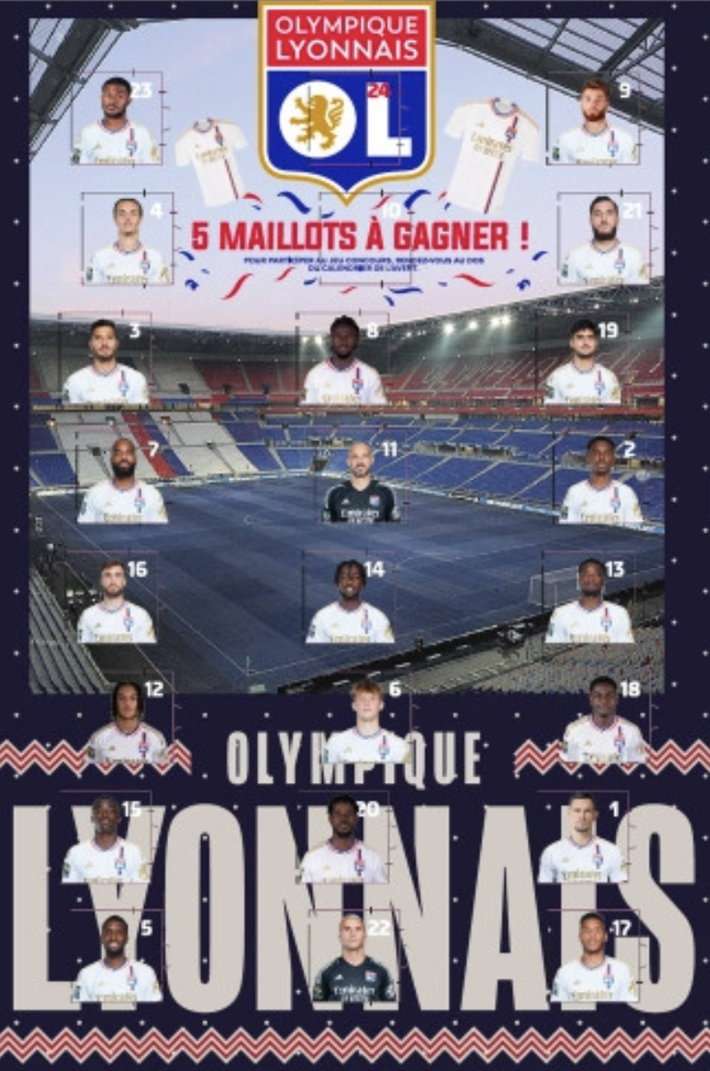 Une case, une surprise à ouvrir chaque jour pour déguster de délicieux chocolats accompagné de vos joueurs préférés.