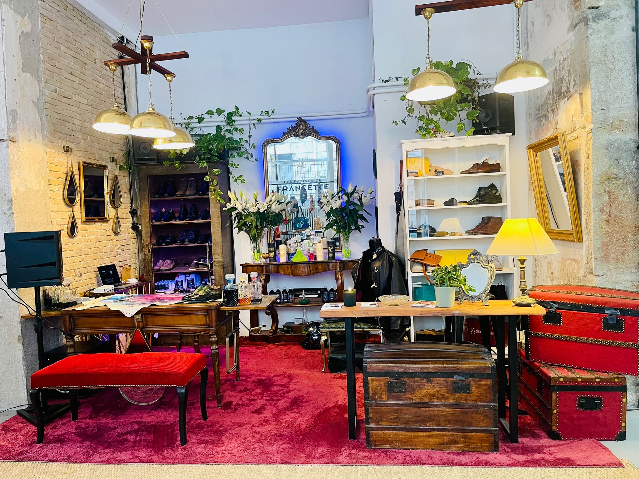 Quand on entre dans l’atelier-boutique 6E, qui réunit des artisans engagés et inspirés, l’œil est tout de suite attiré par le premier stand face à l’entrée, à l’aura lumineuse violette et à la déco vintage : aux Patines de Francette, on redonne vie à vos objets en cuir. Votre paire de bottines préférée est abimée ? Pas de soucis, Boris les chouchoutera, pour leur redonner leur brillant d’antan. Teinture, personnalisation, entretien, coloration : tout est possible chez les patines de Francette.