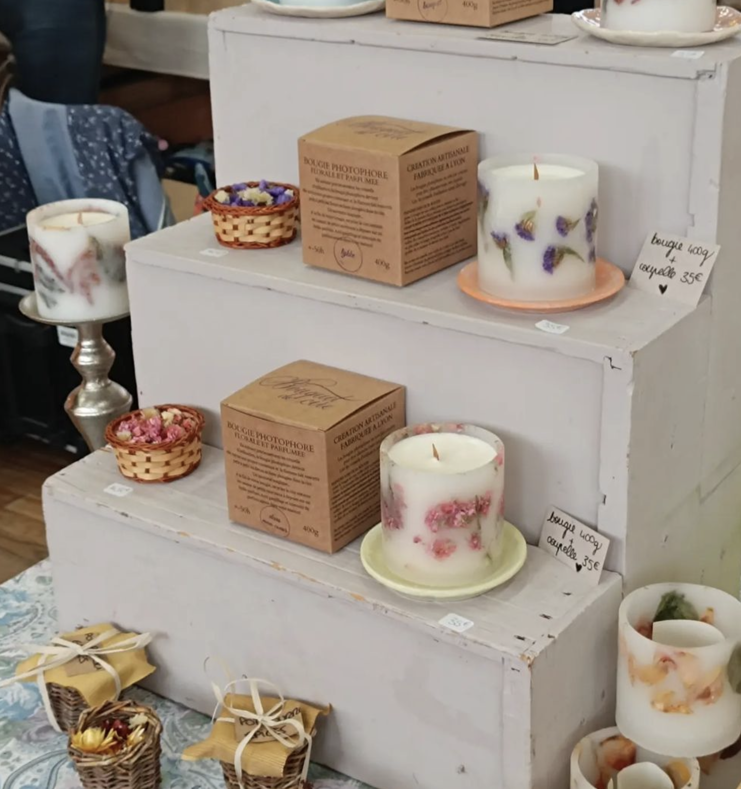 Une bougie artisanale de Bouquet de Cire