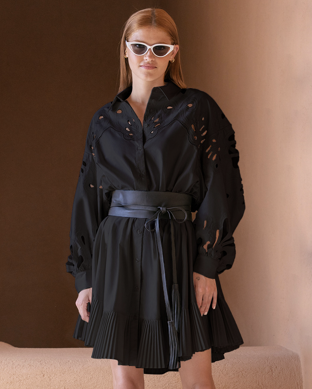 Robe Rivera, popeline noire brodée et découpée à la main - 347 €