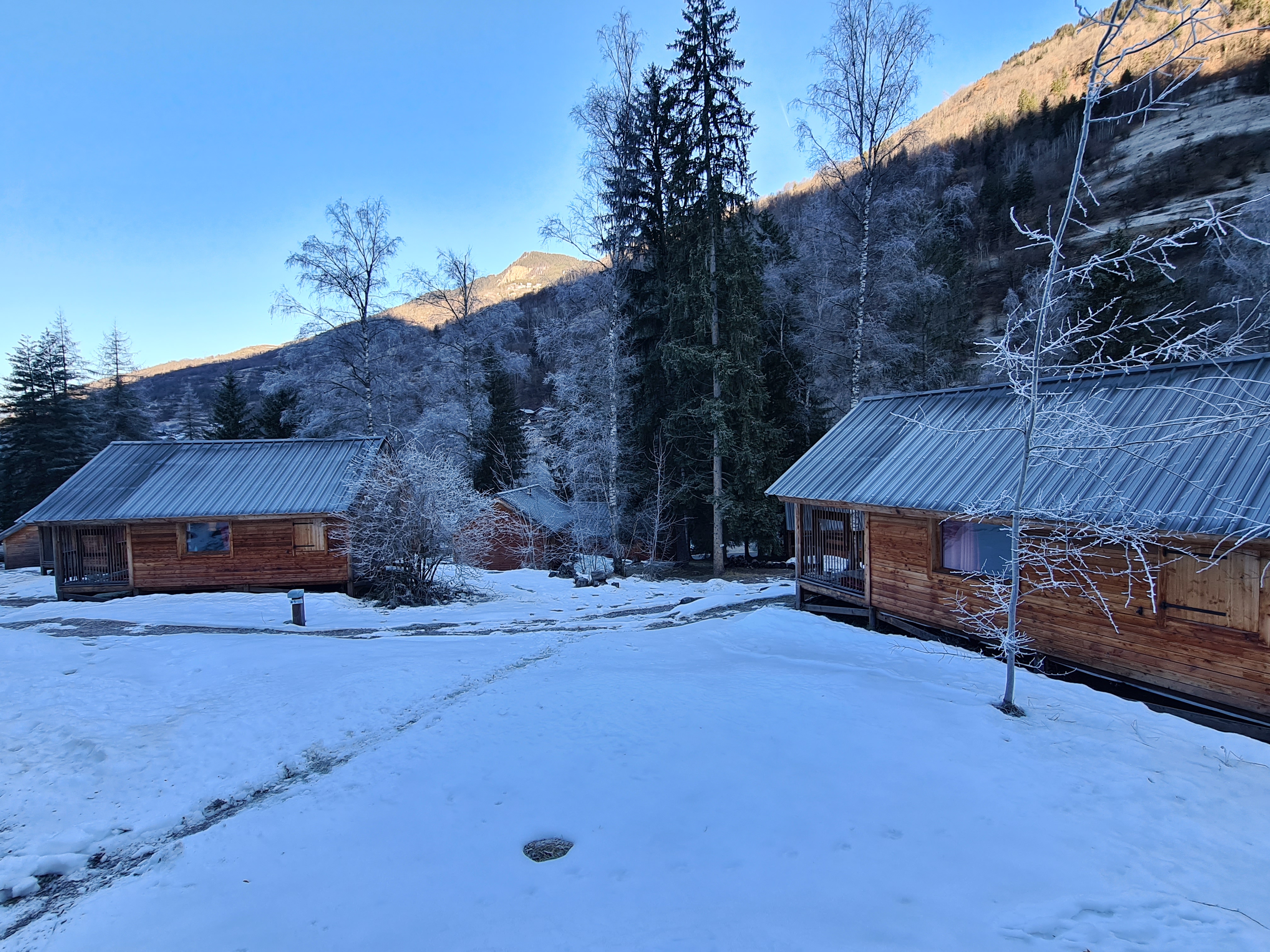 Les bouchons du vendredi soir n’auront pas entamé notre enthousiasme de passer un week-end à la montagne. Après un peu moins de 3 heures de route, nous voilà en Savoie. On attendra le lendemain matin pour découvrir les sublimes paysages de montagne. En attendant, nous franchissons les portes du camping Huttopia Bozel en Vanoise. La neige est au rendez-vous mais nous circulons plutôt facilement dans l’allée menant à notre chalet en bois. Pas question en effet de passer la nuit sous la tente au vu des températures négatives du moment...