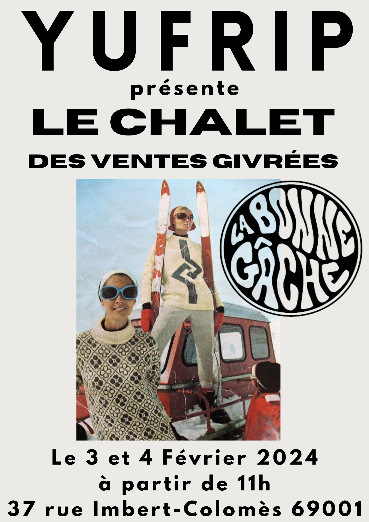 Ces 3 et 4 février, venez découvrir l’événement Le Chalet des ventes givrées organisé par la friperie lyonnaise Yufrip au bar La Bonne Gâche dans les pentes de la Croix-Rousse.