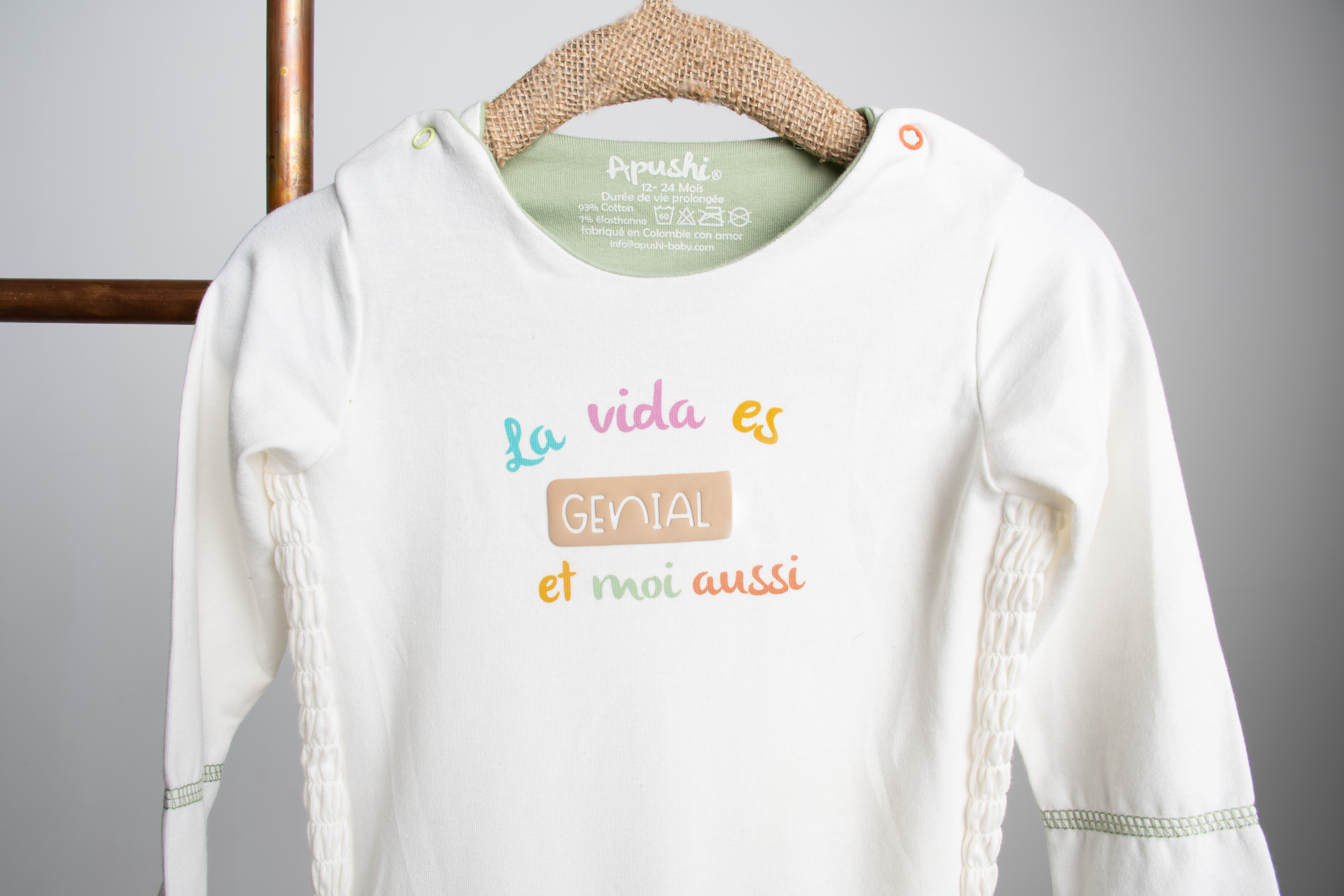 C’est donc afin de contrer ce problème de gaspillage massif, que Angelica Nossa a pensé Apushi : des vêtements qui s’adaptent à la taille changeante des petits et qui leur permettent d’évoluer dedans. Les vêtements sont conçus à partir de tissus élastiques et composés de coton souple, bio et hypoallergénique. Elle collabore étroitement avec un pédiatre afin “d’assurer des produits confortables pour que le bébé ait de la mobilité“, dit-elle.